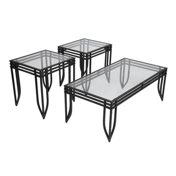 / 3 Piece Reception Occasional Table Set – Metal and Glass