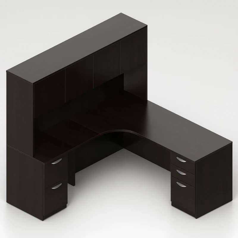 71″ L-Shaped Credenza with Left Corner Extension & Hutch