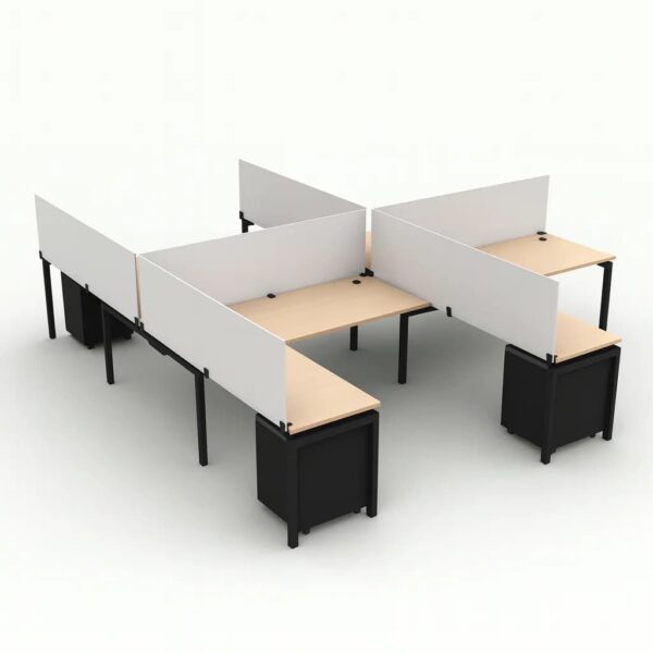4 Workstation with Acrylic Top Privacy Panels & Pedestal Drawers