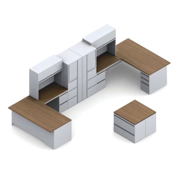 Reception Desk Zira with Straight Top Lateral File Cabinets & Storage Cabine